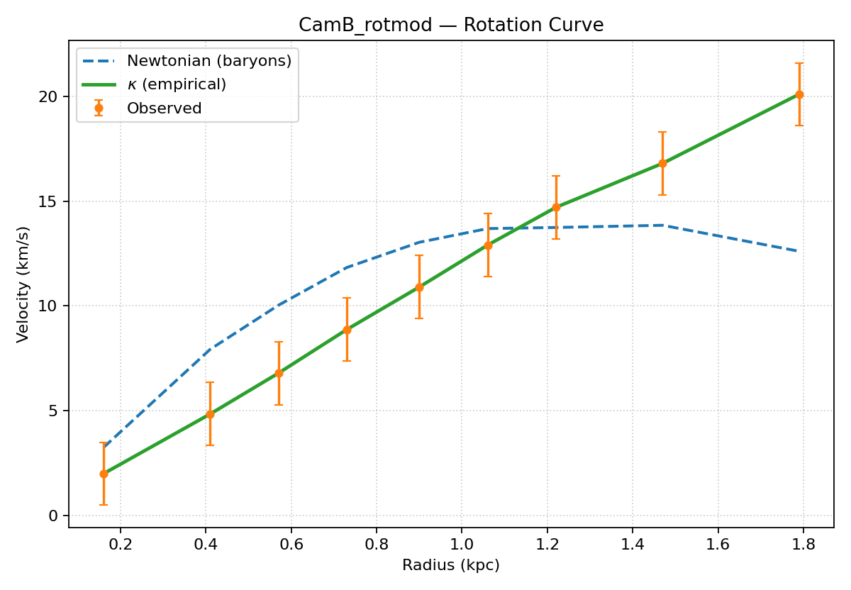 Densities decrease with radius while coherent differential rotation produces increasing shear. The curvature-response term becomes significant at large radii. The effective velocity profile maintains an extended form through the exponential factor , generating characteristic flat rotation curves. - Cluster and Collision Regime